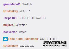 也由于GTA5车辆进入水中就无法再行驶,查尔斯开进水中就会开启重置车的位置的功能,所以当查尔斯周边出现水的时候,观众们就开始在弹幕中兴奋的刷起“Water!”。